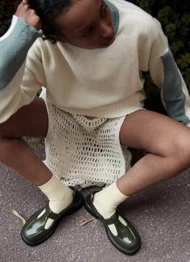 Glänzendes Revival: Mit unserem MARNIE Jane in Moss Patent erfährt der niedliche Schuh aus Kindheitstagen eine erwachsene Neuinterpretation. Dunkelgrünes Knautschlackleder und eine spannende Form machen aus dem klassischen Spangenschuh ein wandelbares, zeitgemäßes Statement-Modell, das vielfältig kombiniert und das ganze Jahr über getragen werden kann. Zum Beispiel mit unserer Cedoublé Crew Sock.